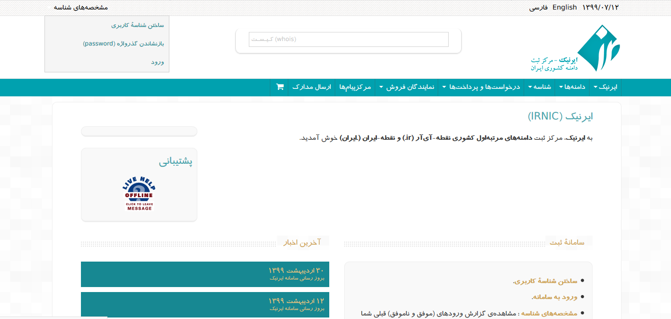 برای ثبت دامنه آی آر شما باید اول در سایت ایرانیک عضو بشید و شناسه کاربری دریافت کنید