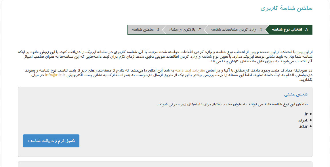 در مرحله بعد رو گزینه تکمیل فرم و دریافت شناسه شخص حقیقی کلیک کنید