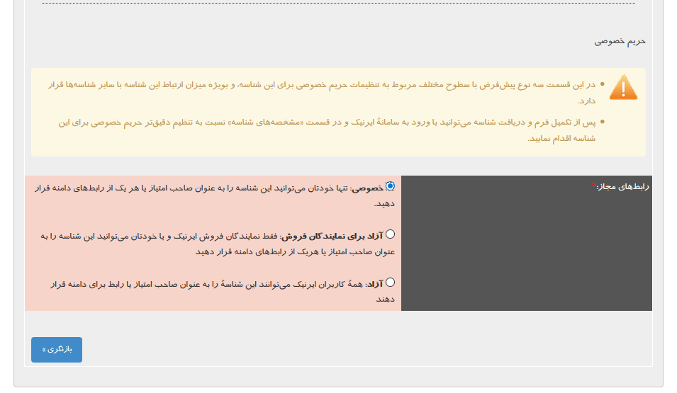 در پایین این فرم ، قسمتی را با عنوان حریم خصوصی خواهید دید که رو گزینه خصوصی باید تنظیم شود