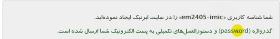 این شناسه ساختگی و برای نمونه است لطفا شناسه ای که داخل سایت نوشته را یادداشت فرمایید "em2405-irnic"