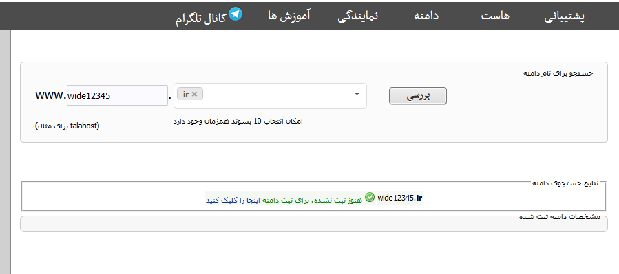 قبل از عملیات ثبت و خرید شما باید از آزاد بودن دامنه درخواستیتون مطمئن بشید